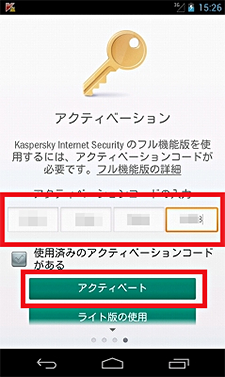 2.アクティベーションコードを入力し、「アクティベート」をタップします。