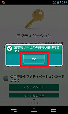 3.無事アクティベートが完了しますと。下記画面が表示されます。「OK」ボタンをタップしてください。