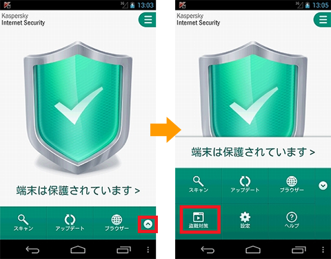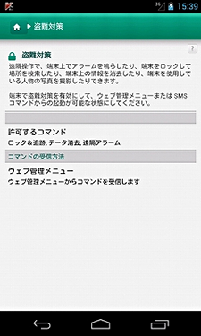 カスペルスキー インターネット セキュリティ for Androidには盗難紛失時の保護として遠隔操作機能が搭載されています。