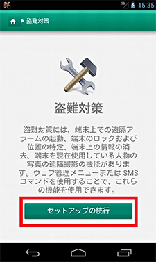1.メイン画面から「盗難対策」をタップして設定を進めます。