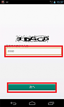 8.不正防止のための画面に表示された文字列を入力して「次へ」をタップしてください。