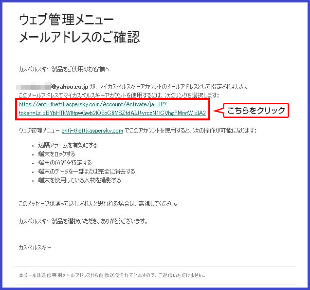 メール受信から5日以内に実施していただけない場合は、登録されたメールアドレスが無効になりますのでご注意ください。
