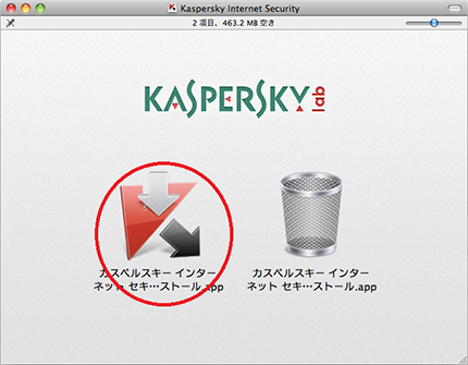 起動したインストーラーのインストールアイコンをクリックし、インストーラーを起動します。