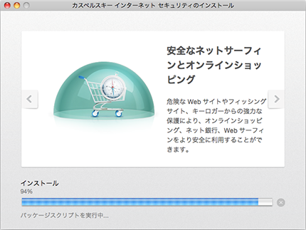 - カスペルスキー セキュリティは、他のセキュリティソフトと同時にインストールして使用することができません。他のセキュリティソフトが存在する場合、インストール中に該当のセキュリティソフトのアンインストールをお願いする場合がございます。