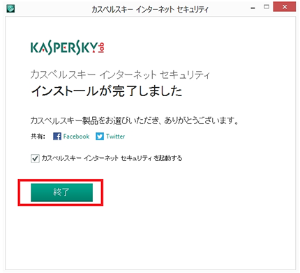 5.インストールが完了したら「終了」ボタンをクリックしてアクティベーションへ進みます。