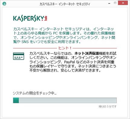 7.カスペルスキー インターネット セキュリティが起動するのを待ちます。システムの情報を収集するため、ご利用のPC環境によっては2~5分の時間を必要とします。システム情報収集は初回起動時のみ行われます。次回からは実施されません。