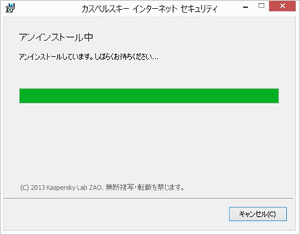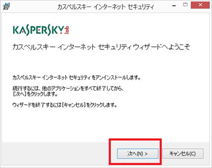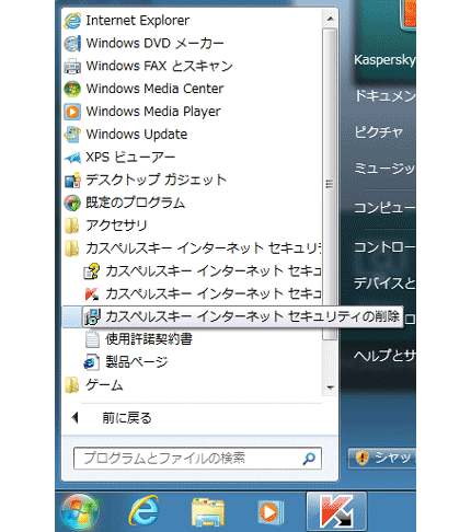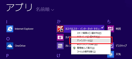 (1)Windowsのスタート画面から、「カスペルスキー インターネット セキュリティの削除」を選択します。
