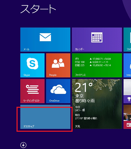 (1)Windowsのスタート画面でデスクトップを選択します。