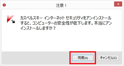 3.注意のダイアログが表示されますが、「同意(A)」をクリックします。