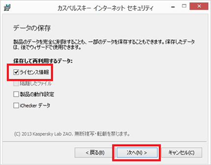 5.必ずライセンス情報を残した状態でアンインストールを進めて下さい。
