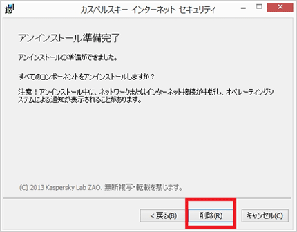 6.アンインストールの準備が完了しました。「削除(R)」をクリックします。