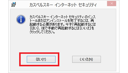 8.アンインストール完了後、必ず再起動を実施して下さい。「はい(Y)」をクリックします。