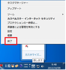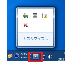 1.カスペルスキー インターネット セキュリティのメイン画面を呼び出すため、タスクバーからタスクアイコンを選択します。「K」マークを右クリックしメニューを表示させます。