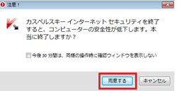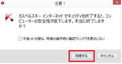 3.カスペルスキー インターネット セキュリティの終了ダイアログで「同意する」を選択します。
