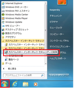 4.スタートメニューから「カスペルスキー インターネット セキュリティの削除」を表示させクリックします。