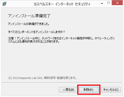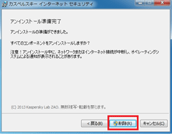 カスペルスキー インターネット セキュリティをアンインストールするには、以下の操作を実行します。