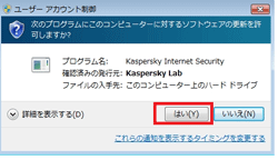 9.場合によってはユーザーアカウント制御の確認ダイアログが表示されます。「はい」を選択します。